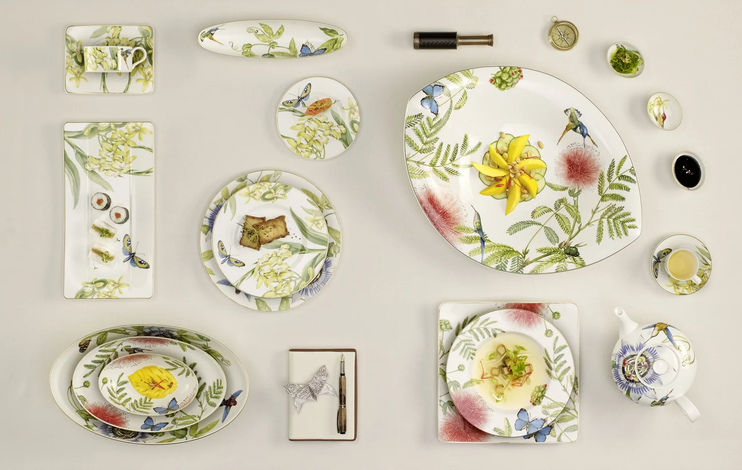 Moderní, okouzlující a exotická, taková je kolekce Amazonia Anmut, inspirovaná prací botanika Alexandra von Humboldta. Je doslova uměleckým dílem, na kterém nádherně vyniknou vaše delikatesy.