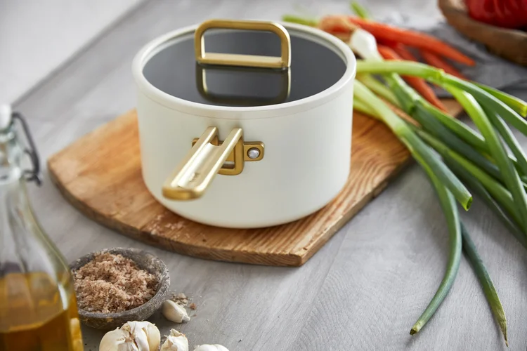 Náš nejmodernější keramický nepřilnavý povrch. Je vhodný do myčky nádobí a neobsahuje škodlivé chemikálie PFAS.