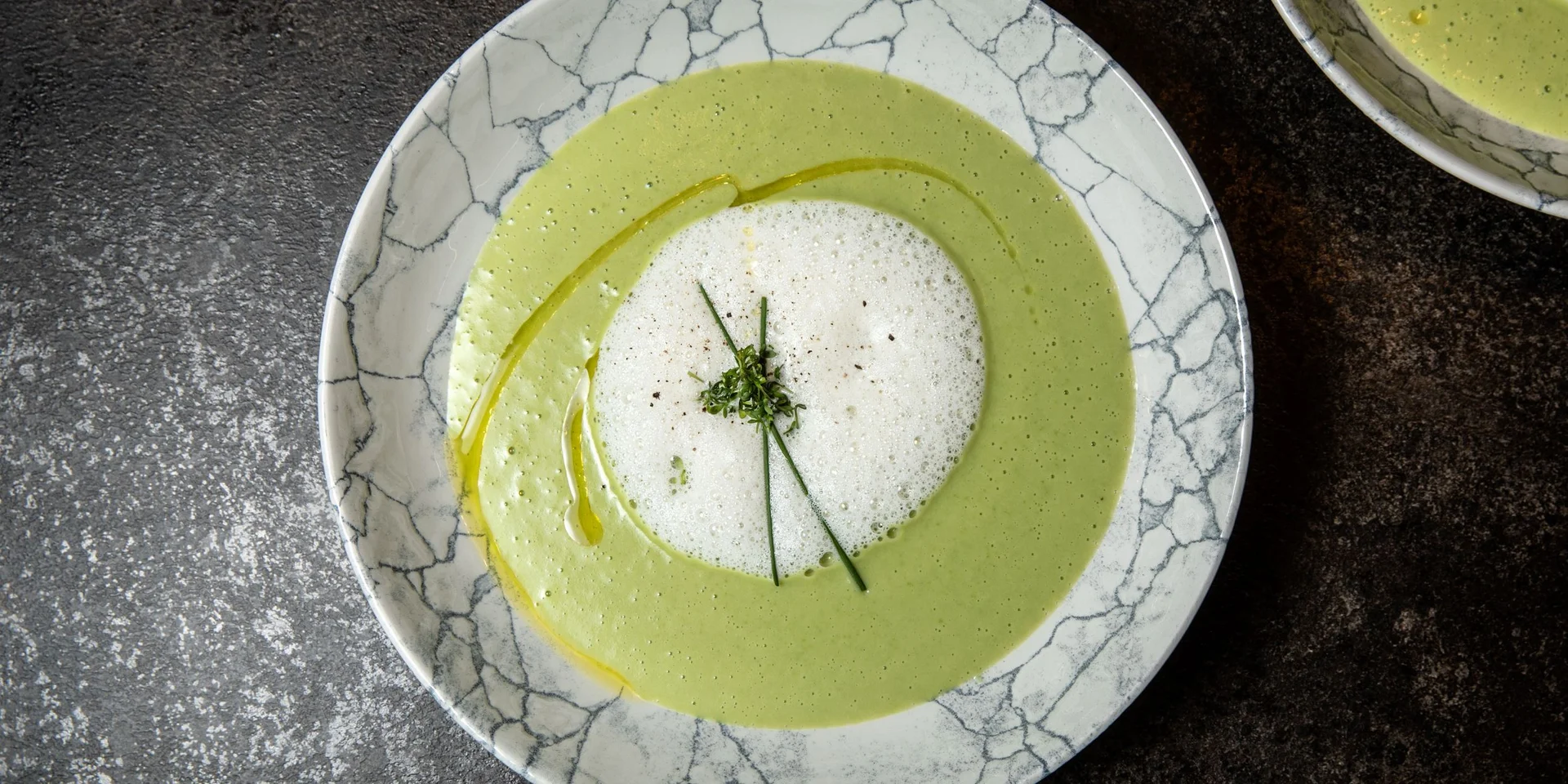 Vyzkoušejte recept na hráškový krém podle kuchaře Lukáše Čížka, který se pyšní titulem Kuchař roku 2022. Lukáš si pro vás připravil jednoduchou, svěží jarní polévku doplněnou o slaninovou pěnu, která polaská vaše chuťové pohárky.