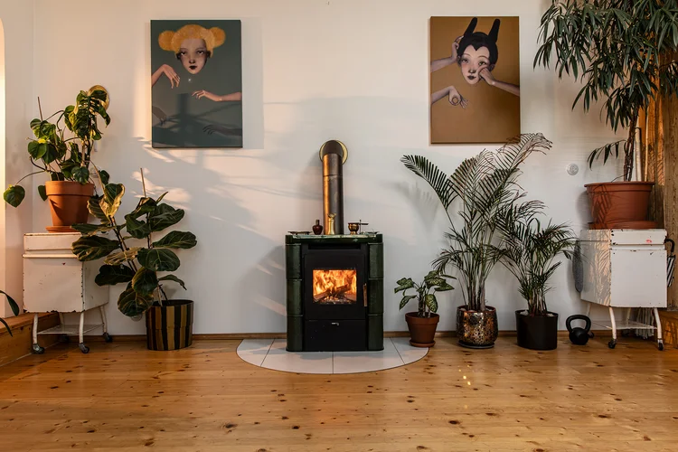 Světlé bezčasí s krbovými kamny, naše útočiště v šestém patře bez výtahu.