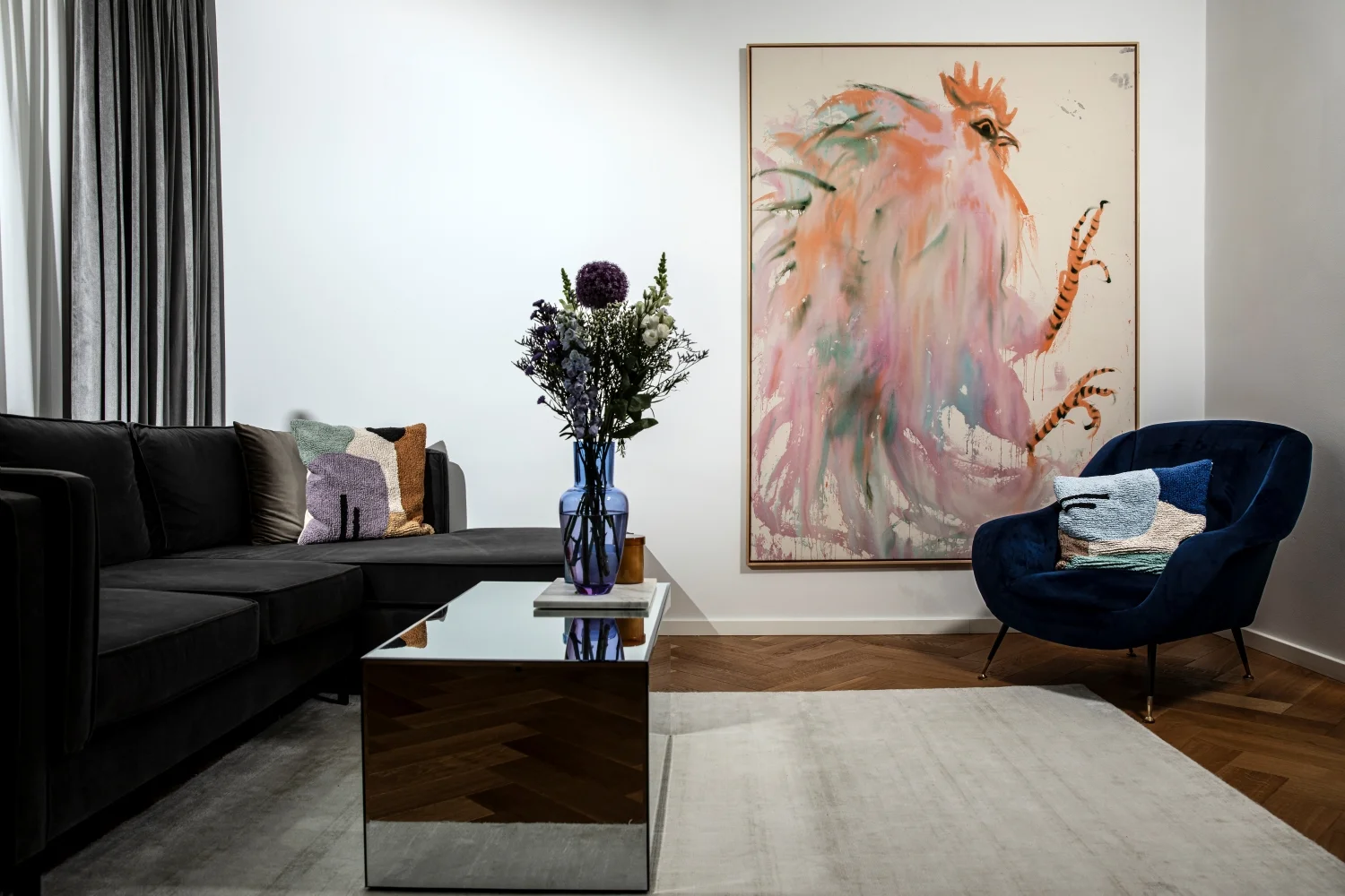 Obývacímu pokoji dominuje obraz kohouta od talentovaného Andreje Dúbravského.