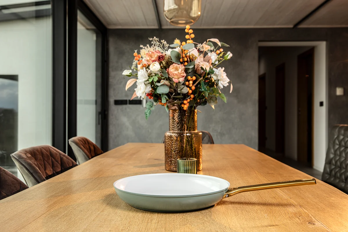 Přítelkyně a její pánev :) Jak se říká: „nejsem tak bohatý, abych si kupoval laciné věci“. Zrovna pánev je věc, kterou mám rád kvalitní, pevnou, a i se rád o ni starám. Rýžovar a mixér.