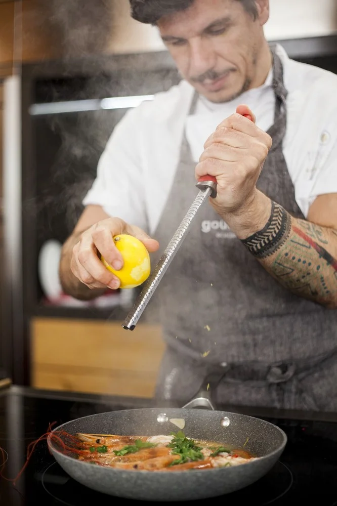 Charismatický sardinský kuchař Gianfranco “Frankie” Coizza, nadšenec do italské kuchyně, gastro konzultant a executive chef v The Finery a fantastický lektor v naší škole vaření Gourmet Academy, pro vás připravil recepty, které jsou úžasné svou chutí a senzačně jednoduché na přípravu. Obsahují ingredience typické pro italskou kuchyni, sezónní suroviny a tipy, které vám usnadní vaření. Nemusíte balit a cestovat do dálek, abyste se s námi mohli vydat na výlet po slunné Itálii. Sejdeme se v kuchyni! Stačí jen krevety a dalších pět ingrediencí a v rekordním čase připravíte luxusní večeři pro vzácnou návštěvu. Krevety servírujte se svěží citronovou limonádou nebo s bílým vínem.