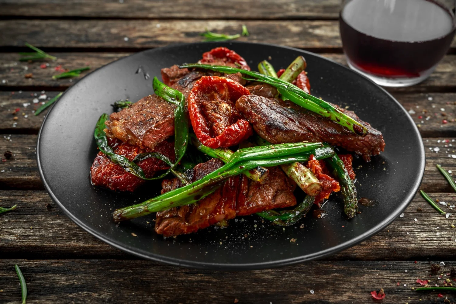 - Ke steaku se hodí povařené a pak na másle krátce restované fazolky nebo mladé cukety. Můžete sáhnout i po pečivu, hranolkách, předem uvařených a pak opékaných bramborách, pečivu nebo skvělých švýcarských rösti.