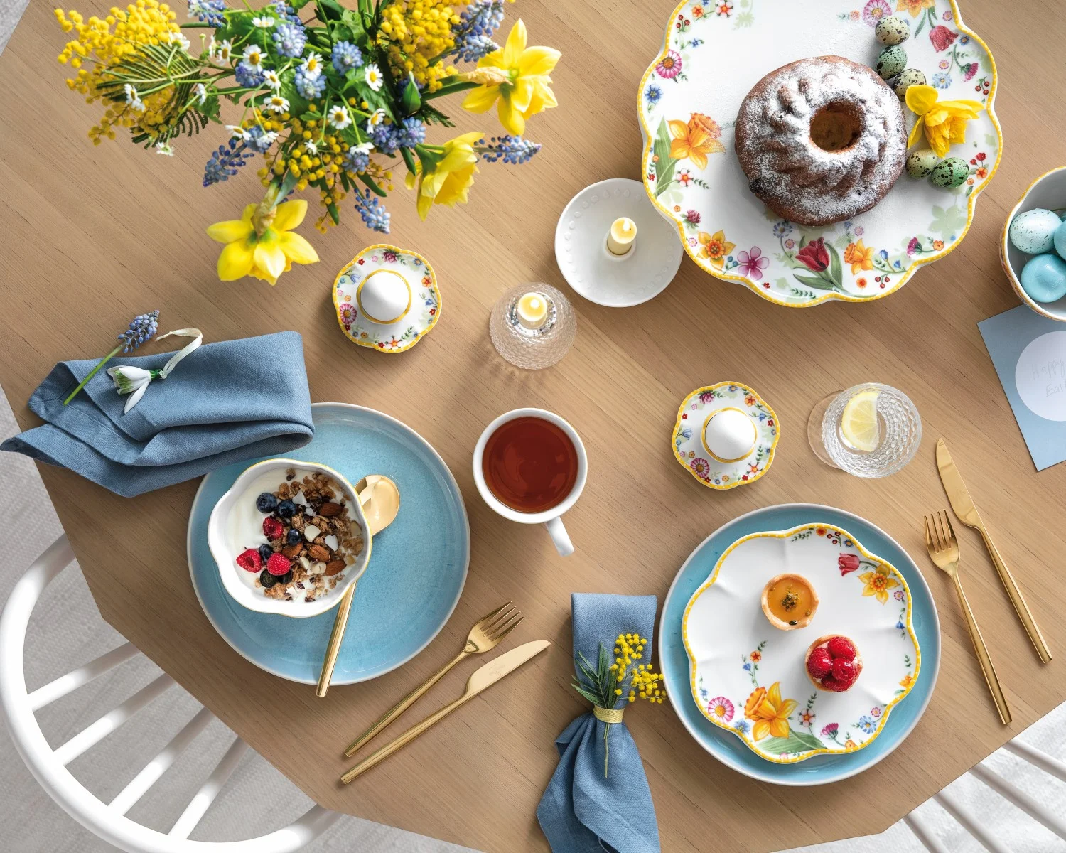Prostřený stůl, který srší jarními motivy. Jaro je krásným obdobím, kdy se po dlouhé šedé zimě příroda znovu probouzí a začíná hrát nejen pestrými barvami, ale také jemnými vůněmi kvetoucích stromů a květin. Pozdvihněte chutné pokrmy elegantní, přesto však hravou výzdobou, která neujde pozornosti dospělých ani dětí. Designová váza plná rozkvetlých tulipánů, snídaňová souprava s květinovým dekorem, kterou jste dostali darem od své babičky, či sněhově bílý ubrus podtrhnou atmosféru vašeho tematického brunche a dodají jídlu šmrnc. Nebojte se být kreativní a vneste do výzdoby i kousek sebe.