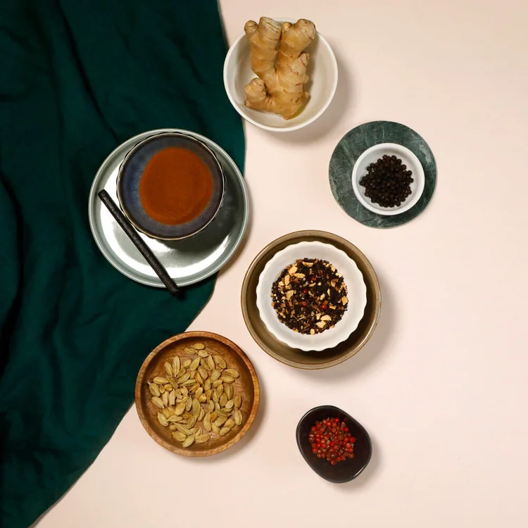 Pro přípravu latte by to měl být vždy čaj s výraznou kořeněnou chutí, mezi které patří Kashmir Tchai, inspirovaný tradičním receptem na Chai, ale také Tsarevna, kultovní vánoční směs nebo Tchai of Tiger s výraznou chutí skořice, zázvoru a kardamomu.