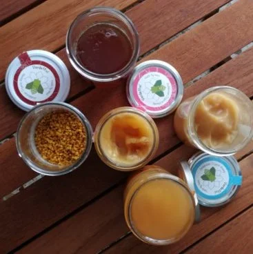 Zní to dost neuvěřitelně, ale mateří kašička je produkt hltanové žlázy dělnic, které se živí pylem. V úlu se využívá ke krmení larev dělnic během prvních třech dnů jejich života, larev budoucích královen-matek po celé jejich larvální stádium a samozřejmě také pro krmení včelí královny po celý její plodný život (dokud snáší vajíčka). V době nadbytku této látky v úlu jsou s ní krmeni i trubci. Mateří kašička má přímo zázračné regenerační a protizánětlivé účinky. Propolis je včelami posbíraná pryskyřice z pupenů dřevin, smíchaná s výměšky jejich žláz. Do úlu ji včelky nosí v rouskách na zadních nohou, stejně jako pyl. Existují dvě konzistence – řídká a hustá, každou z nich používají včely jinak. Tu první pro natírání stěn úlu, které tím dezinfikují, tu druhou, hustou, používají na tmelení skulin. Propolis má svíravý účinek, je výborným prostředkem např. proti paradentoze, používá se také při léčbě oparů a špatně se hojících ran.